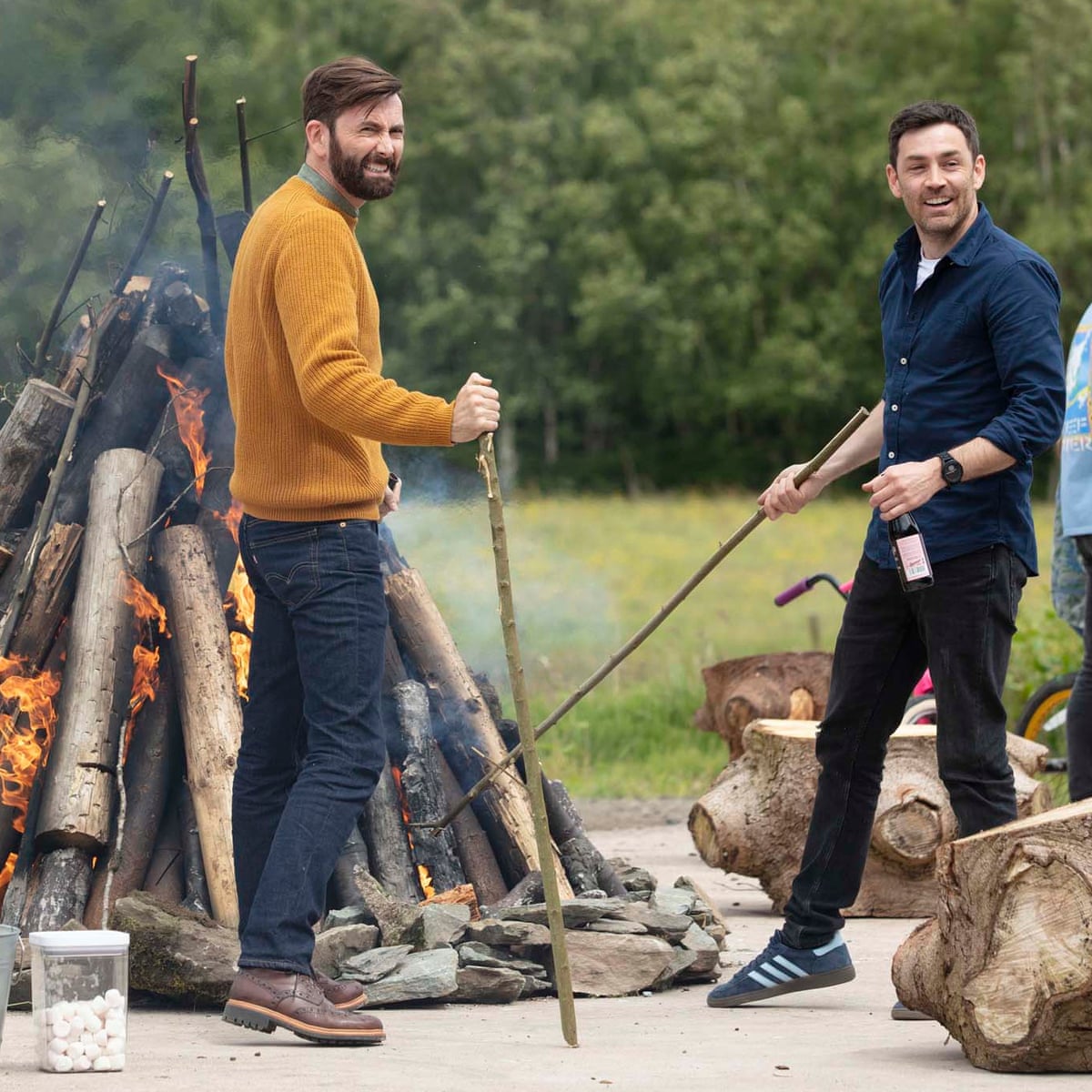 Flicker of flames and the smell of smoke says the shows official synopsis. David Tennant and Anna Madeley in Deadwater Fell. 2021 Comic Relief 2021.