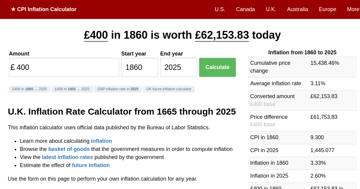Https Www Officialdata Org 1860 Gbp In 2017 Amount 400